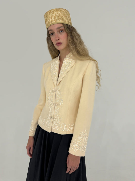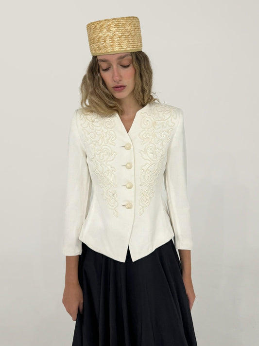 Vintage Ivory Scroll Embroidered Jacket